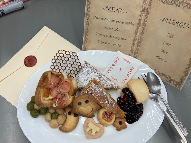 3年「調理」の授業で、アフタヌーンティーのお菓子を手作りし、教員に販売しました。クッキーやスコーンなどの焼き菓子は見た目も美しく、味も好評で、笑顔があふれるひとときとなりました。調理や接客を通して、実践的な学びを深める貴重な経験となりました。