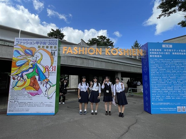 本校家庭科学科1年生から2チーム(4名)が8月31日(日)に青森県弘前市で行われた「第24回全国高等学校ファッションデザイン選手権大会」の最終審査会に出場しました。全国から1,908点応募作品があった中から34チームが最終審査に選ばれ、そのうちの2作品が大津高校の作品です。作品作りを通して、デザイン画や自分のイメージを再現することの難しさと面白さを感じながら取り組みました。最終審査会では、堂々とランウェイを歩き、自分の作品をアピールすることができました。全国各地から集まった他校の生徒や作品、審査員の先生方からのアドバイスからたくさんのことを学ぶことができました。これを励みに来年もファッション甲子園への挑戦を続けていきます。