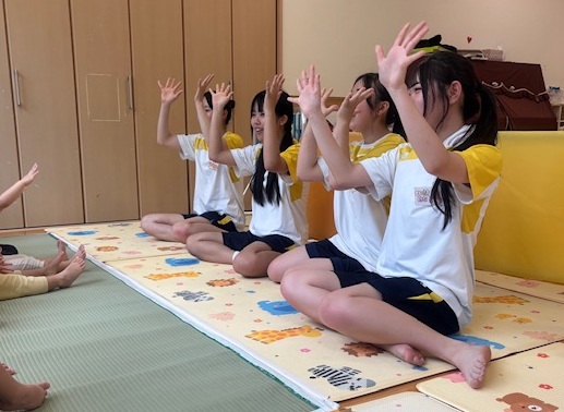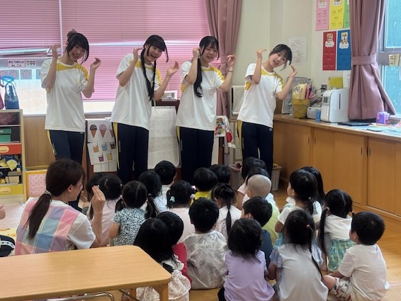 3年「生活と福祉」の授業で、7月に膳所保育園へ保育実習に行きました。幼児との遊びや観察を通して、幼児の生活の様子や発達について理解を深めることができました。また、授業で学んだことを活かして、子どもたちに喜んでもらえるよう、グループで遊びや歌を工夫しました。限られた時間でしたが、子どもたちと触れあったり、保育士の先生方の指導を目の当たりにしたりと、充実した学習ができました。