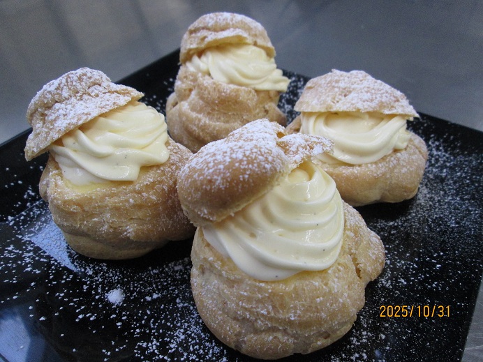 3年家庭科学科「調理」では、2学期に様式別調理の実習に取り組んでいます。先週から「フランス料理」の実習が始まり、憧れの「シュー・ア・ラ・クレーム(シュークリーム)」に取り組みました。